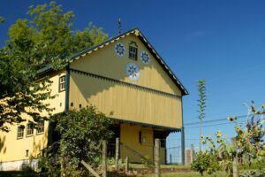 Walk through the lush garden located beside the Ressler Family Home and you will find the restored barn, which once held the animals and farming tools owned by the Ressler family.